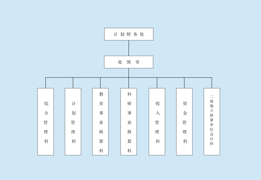 计划财务处是学校一级财务机构,在学校党委行政的领导下,贯彻执行国家财经法规政策,依法管理学校的财务收支;紧紧围绕学校中心工作,组织各项收入,合理调度、安排各类资金;秉行“科学理财、规范管理、优质服务”的财务管理理念,为师生员工提供会计核算、财务管理和服务工作。计划财务处下设综合财务科、计划管理科、教育事业核算科、科研事业核算科、收入管理科、资金管理科、二级独立核算单位会计科等七个科室。现有职工人数28人,其中6人具有高级职称,20人具有中级职称,14人具有研究生学历,14人具有本科学历。